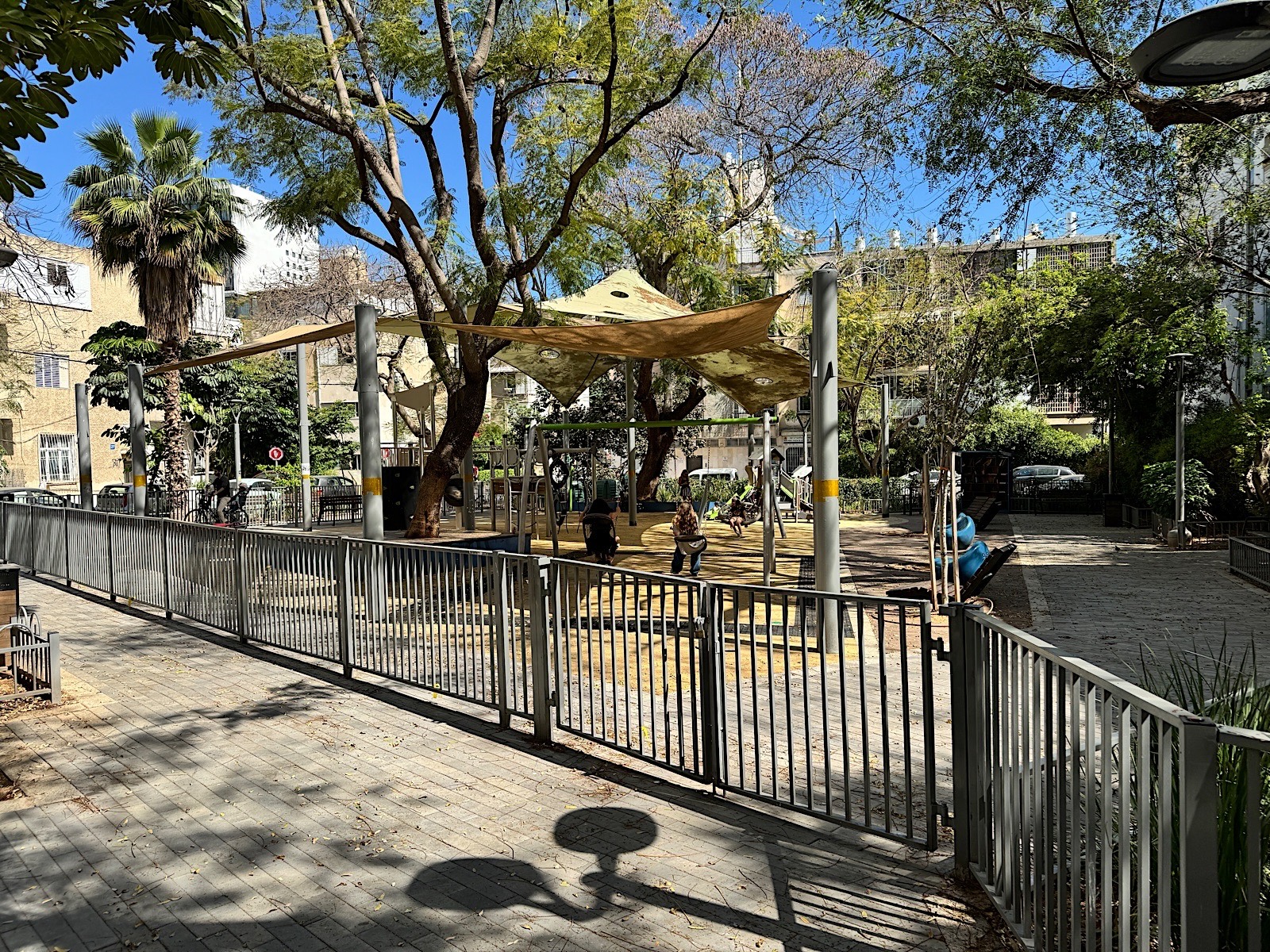 We walked about 6 kilometers today in Tel Aviv. In Israel not Sunday but Saturday is the end of the week and the free day. We noticed among other things that there are lots of small parks with play equipment both for adults and children.