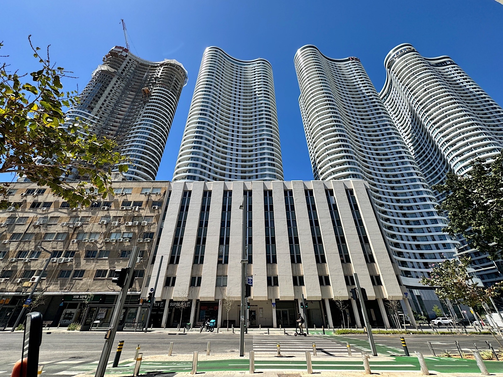 In the pictures you can see (1) how I recharged all the batteries last night, because for the plane ride you are not allowed to take them otherwise, (2) our room number with on the right side the Mezuzah, which is Jewish custom in which a small piece of rolled up Bible text is written, (3) a park as described above, (4) some of this morning's friends, (5) Ron & Karin mirrored, (6) skyscrapers partly still under construction, (7) walking through the streets of Tel Aviv, (8) Here too they sell the Dutch Heineken beer, (9) Visiting our friends from 40 years ago, (10) Food, anyone? (11) and dessert.