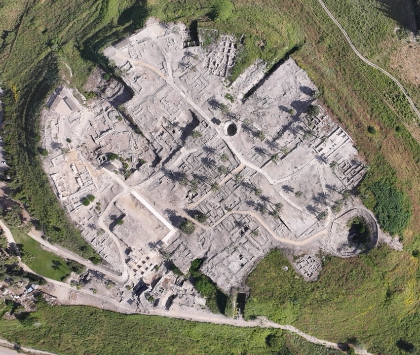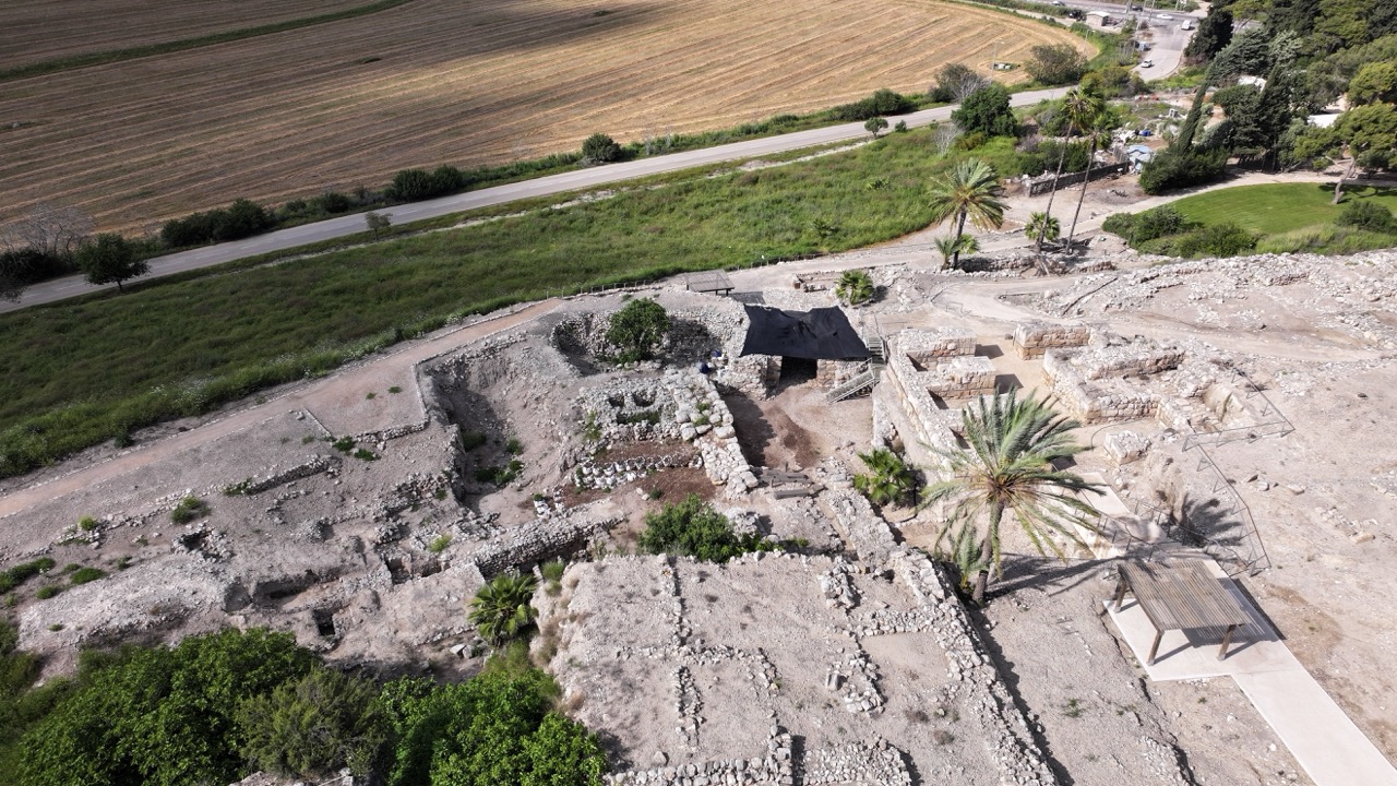 Megiddo is the flagship of Israel archaeology. Some thirty cities were built on top of each other after the previous one was destroyed yet again. Thus an old city gate and a newer one have been found. The old one is the most interesting but cannot be seen well from the air because of a canvas above it.