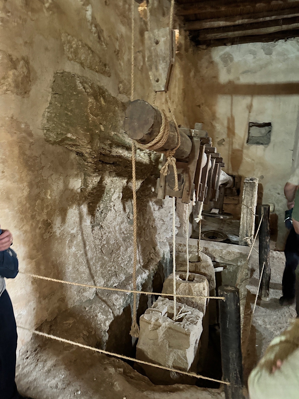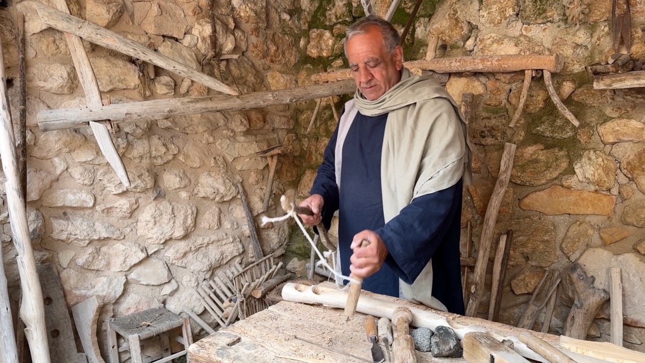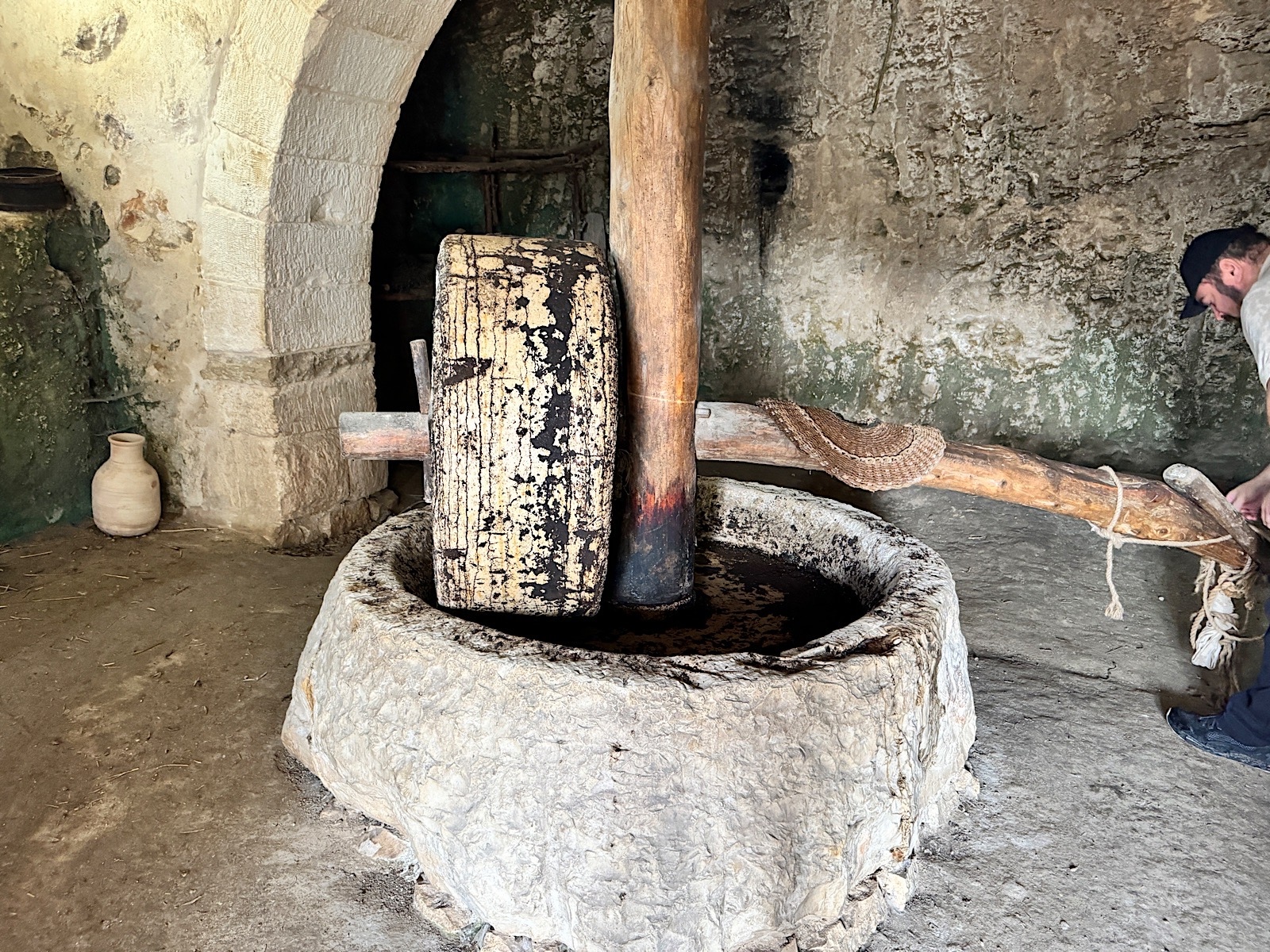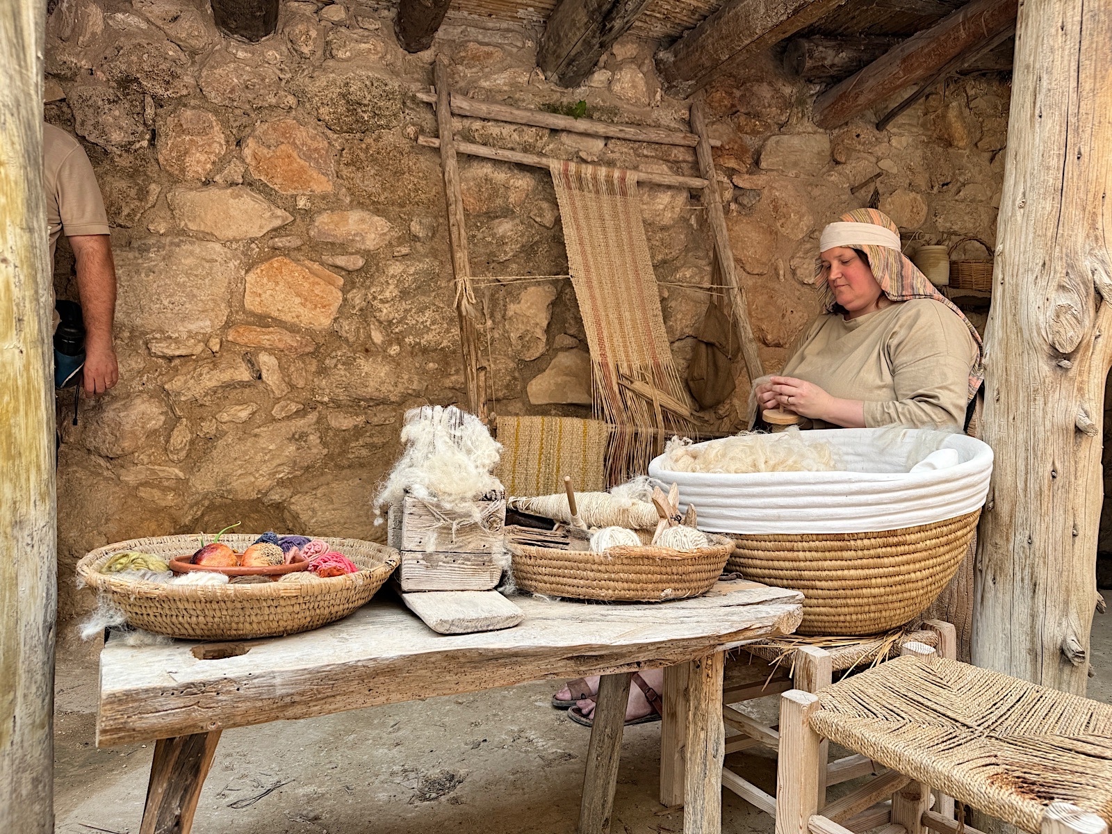 Then to "Nazareth Village" where first century life was recreated as a kind of open air museum with active demonstrations and explanations, very interesting and well done. A shepherd with sheep, a potter, olive oil production, a vineyard with observation tower, wool spinning, and more.