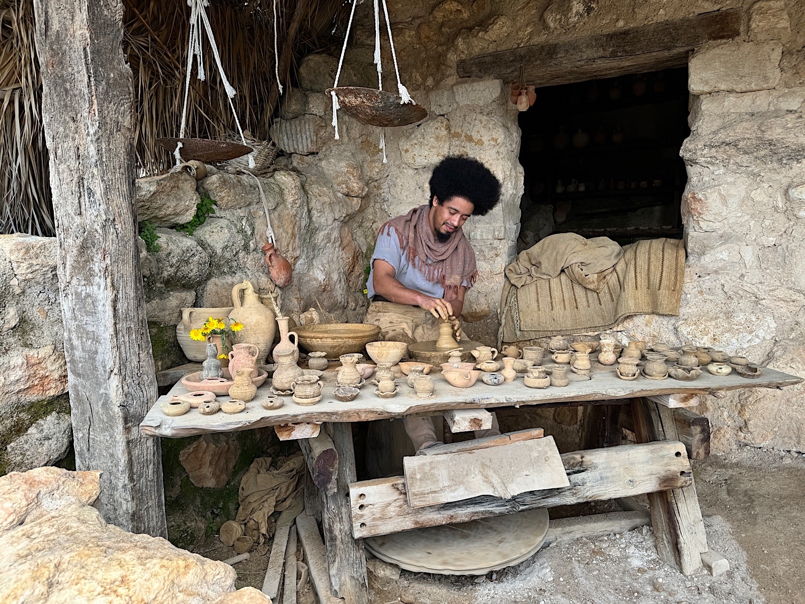 8 x Village from Biblical times closely recreated, with shepherd, how big the rock tombs really were, and lastly as the synagogue in Nazareth looked approximately.