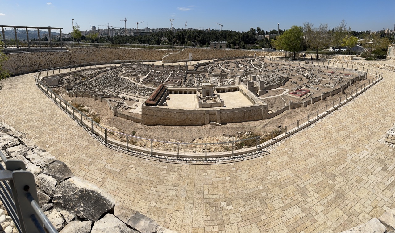 (1) Overview of the Western Wall, (2) the large stones of the upper part of the wall where you now see small stones and which the Jews threw down on the Roman soldiers who attacked them, (3) Small altar that you see in this film about King Josiah which some of you will have seen, where this king drove idol worship out of the land, (4) Model, fairly accurate, of the Jerusalem as it looked in the year 68 G.T.