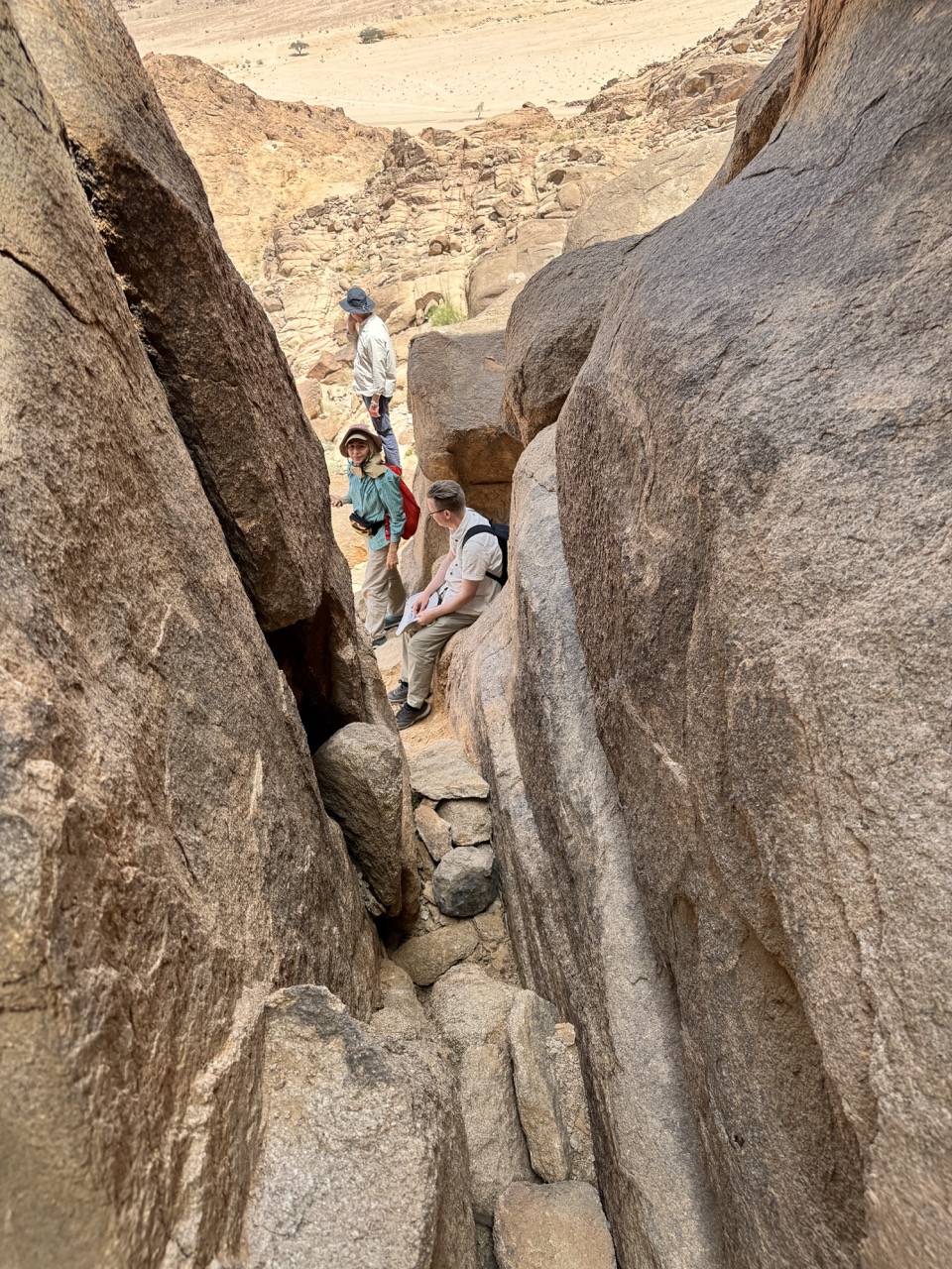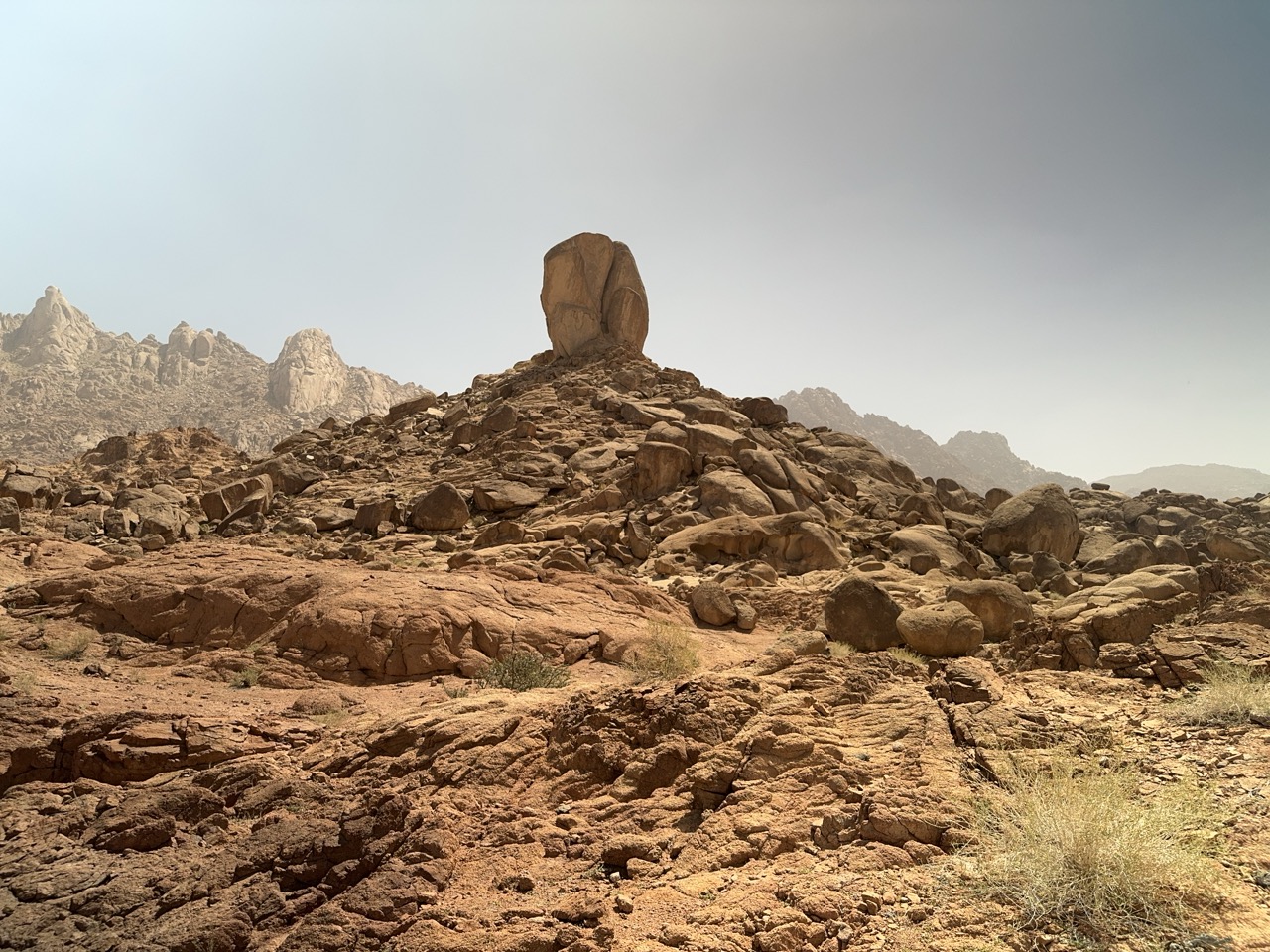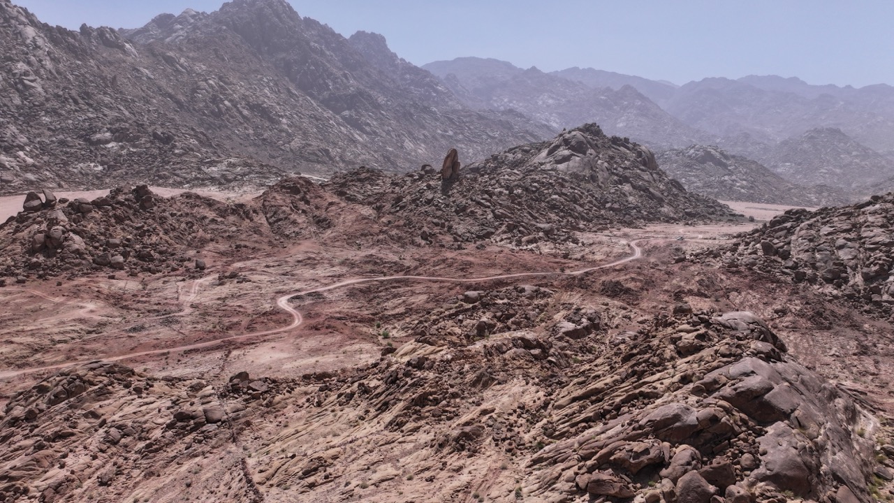 (1) Through the wilderness towards the split rock, (2) the split rock, (3) possible hill overlooking the terrain of the battle with the Amalekites, (4) camels and sheep and goats in the wilderness.