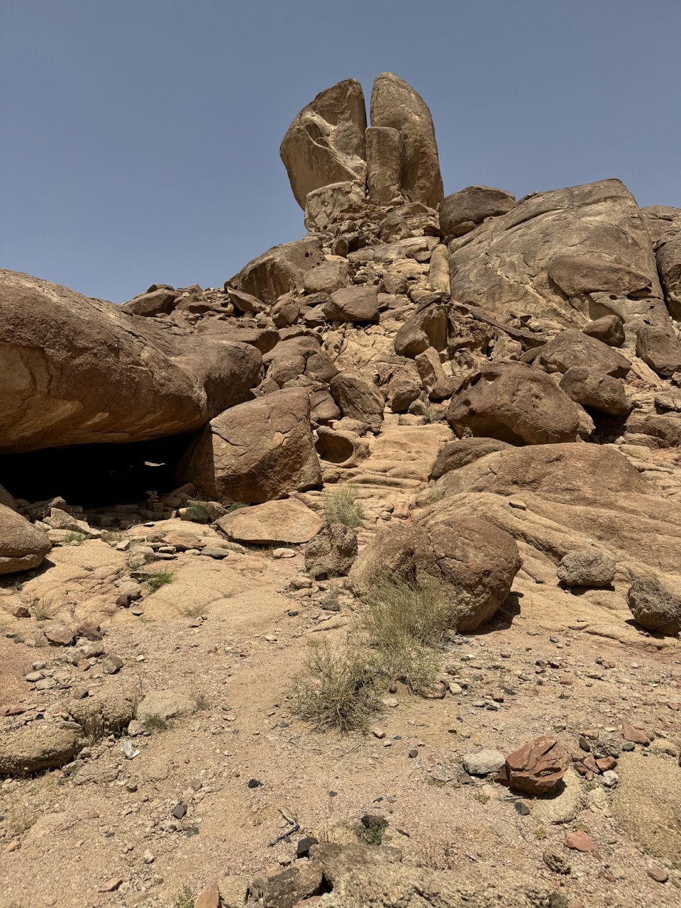 Watching the videos, one notices that a rock protruding slightly upward in the landscape is not just another rock like so many, but is split, and quite large. With obvious traces of water that has flowed from the base of this rock, as the rocks are smoother than those around it.