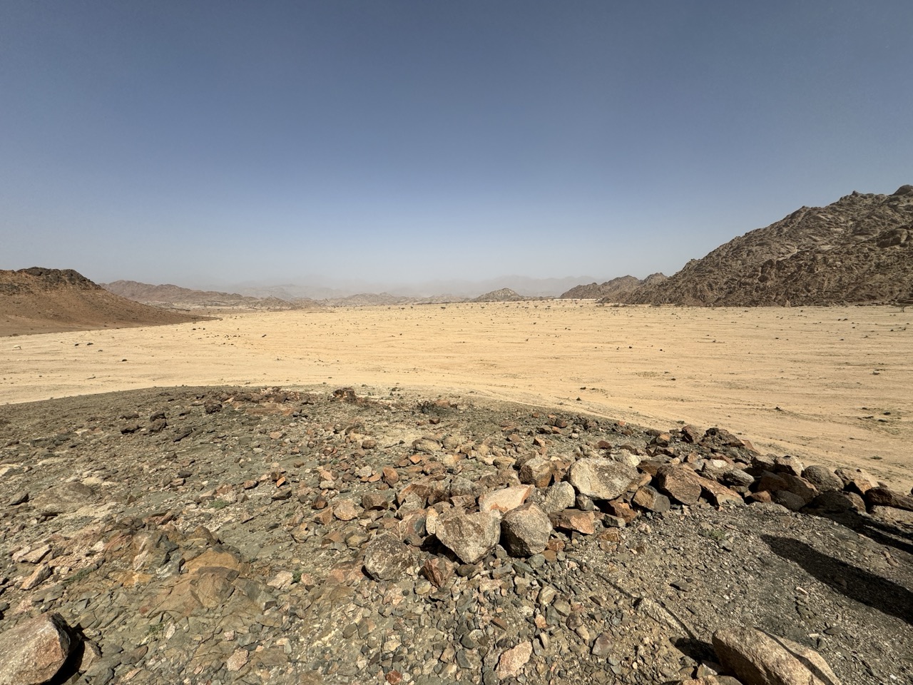 Before we got there we passed through a large plain with a hill that may have been the spot from which Moses watched the battle with the attacking Amalekites. Nearby you will find two large walled areas that apparently were cemeteries, and one has features from Midianite times, which is the time of Moses and Joshua.