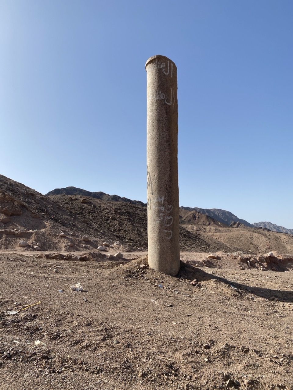 In the afternoon we saw the so-called pillar of Solomon in Nuweiba, there is no ancient lettering (anymore) on it, but it is said to be an identical pillar to the one on the other side (see Day 14 on April 18).